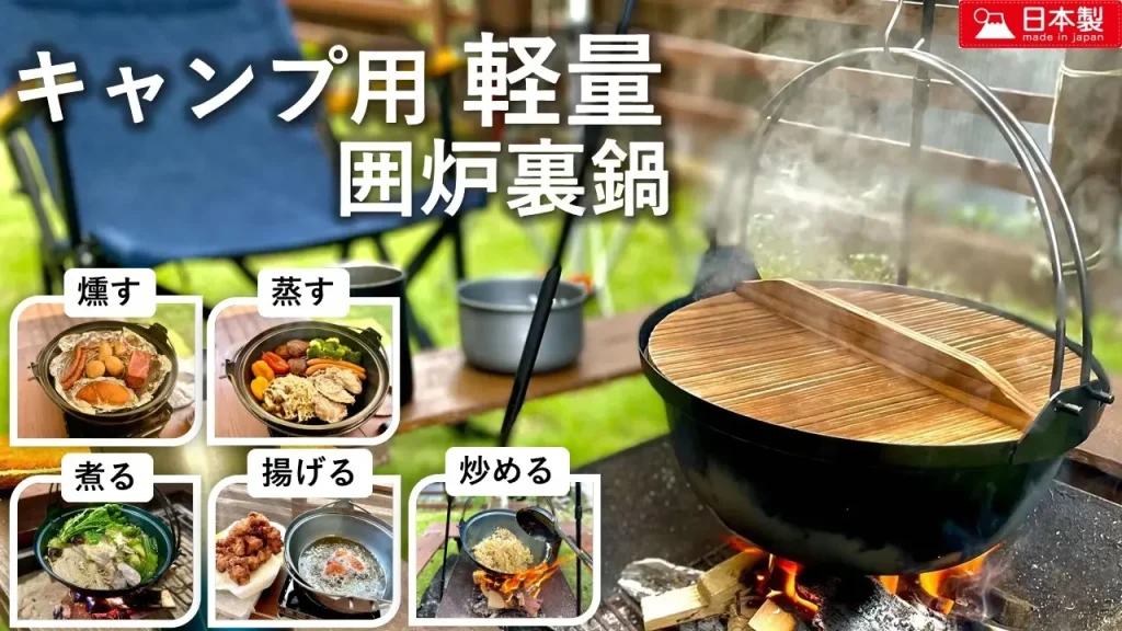 日本伝統の囲炉裏鍋を姿はそのままにキャンプ用に軽量化しました。約1.65㎏!!