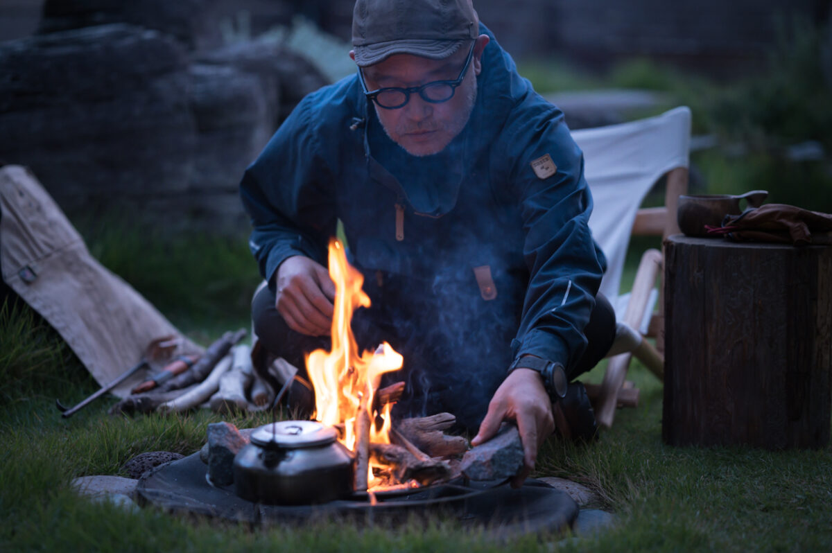 (写真)焚火台:TAKIBISM JIKABI M ISHINOMAKIおよび寒川一氏による使用風景