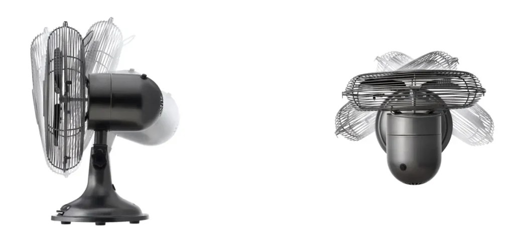ファンは360度回転するので、お好みの角度から風を送ることができる。風量は2段階に調節可能。