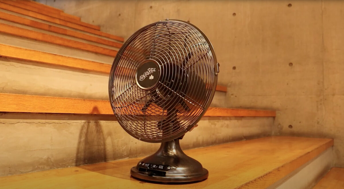 「クラシコ扇風機(USB蓄電)」は、ゴールドのファンとブロンズカラーのフレームがレトロチックなフロア型扇風機です。風量は2段階調節可能で、モバイルバッテリーなどのUSBポートから蓄電できるので手軽に持ち出して使うことができます。