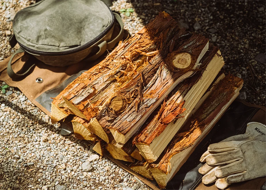 くまはぎの薪は、針葉樹であるスギの木を使用しているため、燃えやすく焚きつけに最適です。