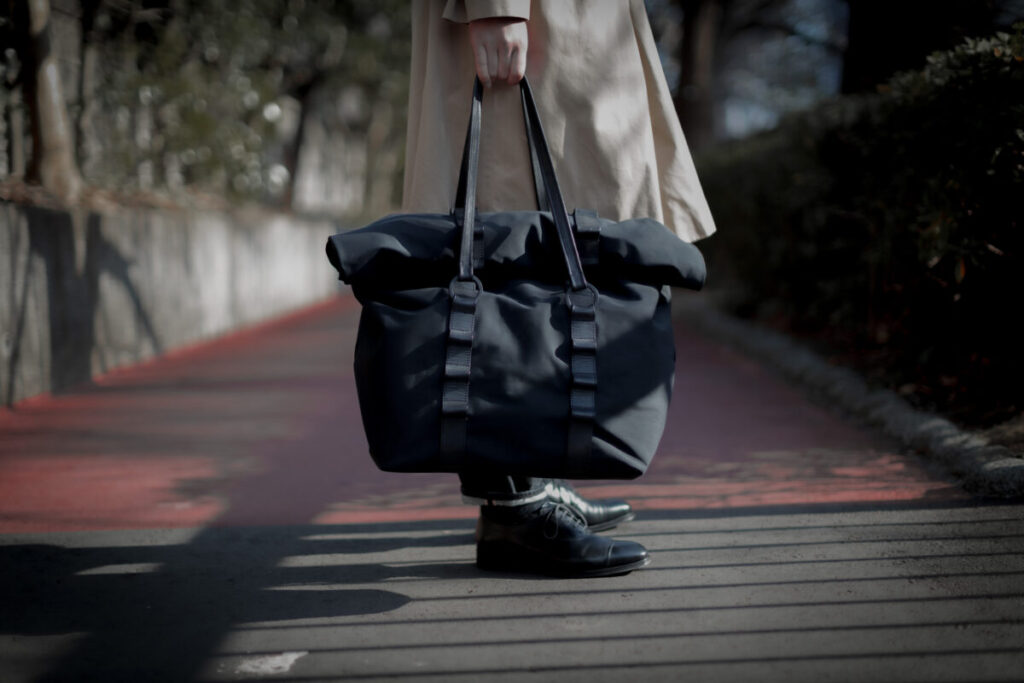 「Livelty O」 ボーダレス&タイムレスをコンセプトに、タウンとフィールドを行き来する大人の男性に向けたブランド。 ファーストコレクションのVoyage(ヴォヤージュ)は、ハンドルの場所を自由に変更でき、ワイヤーを内蔵した本体によりロールトップはもちろん、フラップバッグ・縦型トートのような使い方も可能にする。