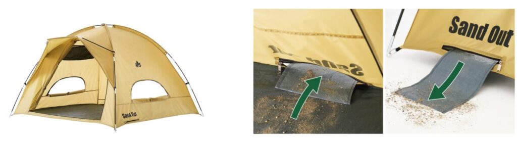 LOGOS独自のSAND OUT SYSTEMを活用することで、室内に入ってきた砂を簡単に外に出すことができ、掃除時間を短縮できる。