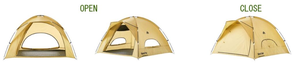 高めの天井と広い室内に加え、大型の窓を3ケ所配置しているので、優れた通気性と開放感を実現します。フルクローズタイプのため、レジャーシーンでの着替えや授乳時に最適です。