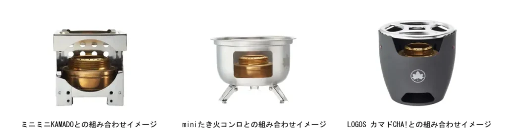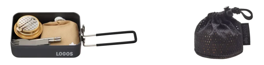 別売りの「ミニミニKAMADO」などに収まるサイズ感で、組み合わせて使用すれば様々な調理を楽しむことができます。また、片付け時には別売りの「LOGOS メスキット」に収納できるほどコンパクトに収納できるほか、収納袋も付属するので、持ち運びにも適します。