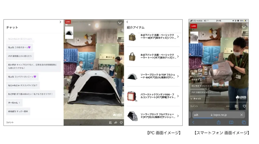 株式会社ロゴスコーポレーションが展開するアウトドアブランドの「LOGOS」は、2022年8月よりLOGOS公式オンライン店にて、ロゴスショップやLOGOS LAND、LOGOS PARKなどで行う製品紹介の様子をお届けするライブコマースの配信を開始する。普段ロゴスショップでスタッフが実施しているテントデモの様子をライブで配信したり、さまざまなアイテムの使用方法や魅力を届けるためのコンテンツを配信している。