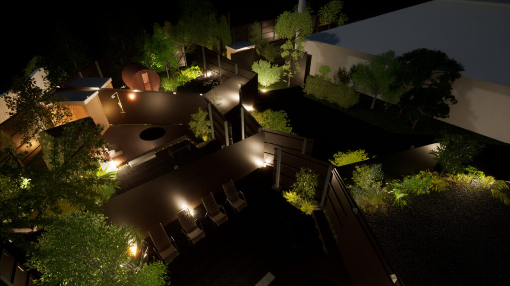 4つのブースでは、それぞれのテーマに応じたサウナが楽しめ、事前に予約が可能。ブース毎に異なるYardWorksデザインの植栽やタイプの違いをを楽しんでみるのもおすすめです。4名用のサウナブースが3つ、6名用のサウナブースが1つとなっており、それぞれのブースを貸し切りで楽しめます。