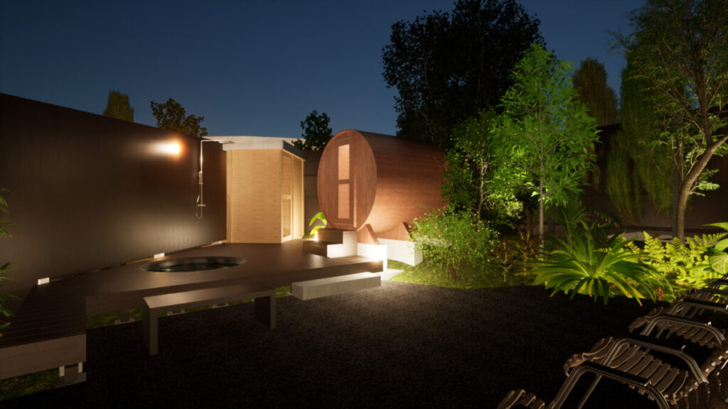 施設名は、「private outdoor sauna MATKA(マトカ)」フィンランド語で「旅」。ホテルの宿泊者はもちろん、日帰りでの利用も可能です。プライベートサウナエリアは、4つのブースで構成されており、それぞれのブースでは、国産の木材を活用した「ONE SAUNA」のバレルサウナ、地下水の水風呂が楽しめます。