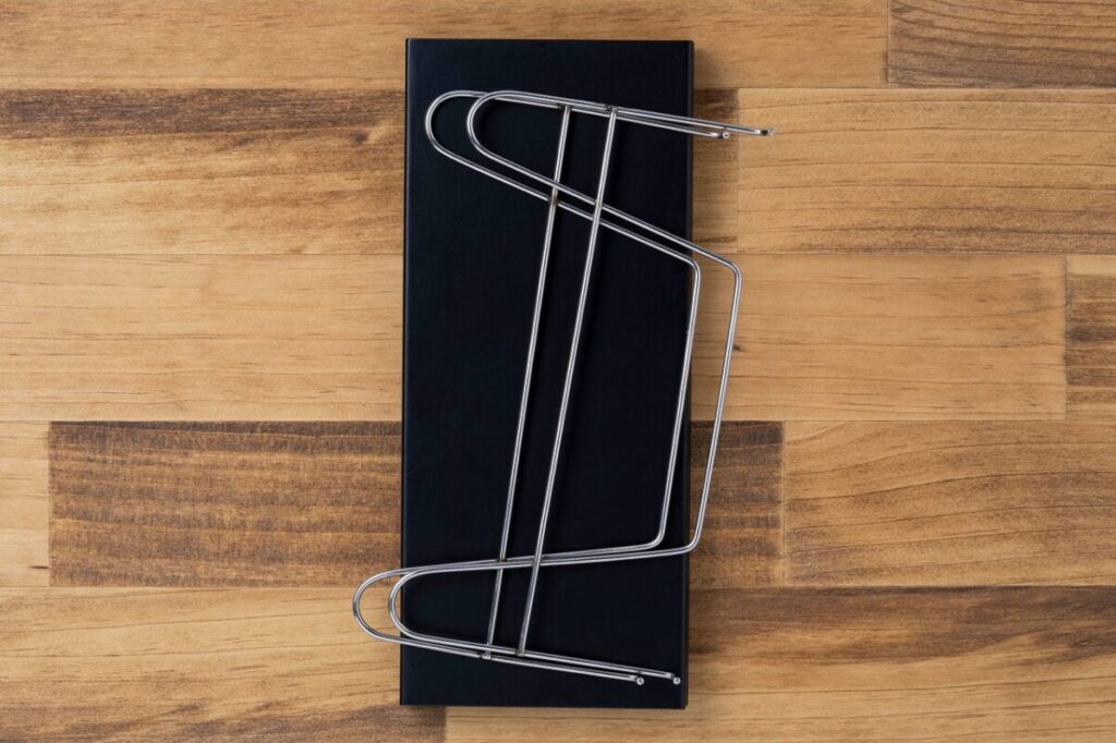 組み立ても簡単で、2枚の天板を合わせたあと、あしを天板に差し込んであとは引っかけるだけでOK。テンションがかかるのでグラつきも最小限!