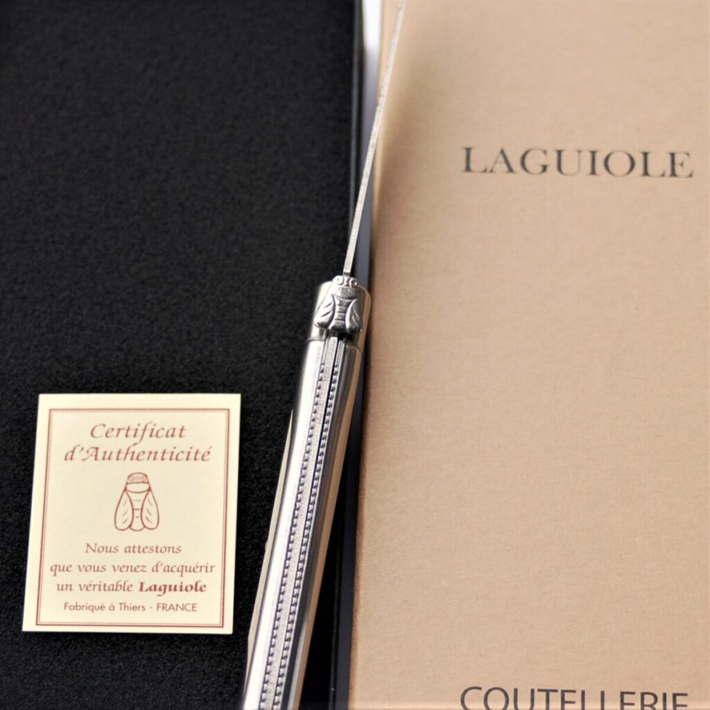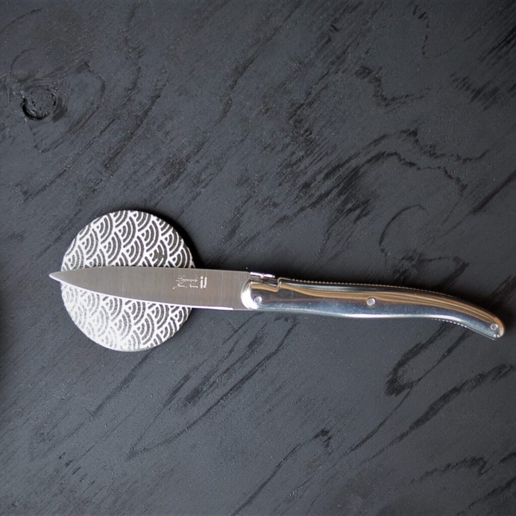 1899年創業の老舗カトラリー工場で生産される本当のライヨール、調理用ナイフですがライヨールの蜜蜂がハンドルに輝きます ハンドル後ろまでブレードパーツがあるフルタング構造、飾りパーツ付上級グレード、実用的かつオシャレなアイテム