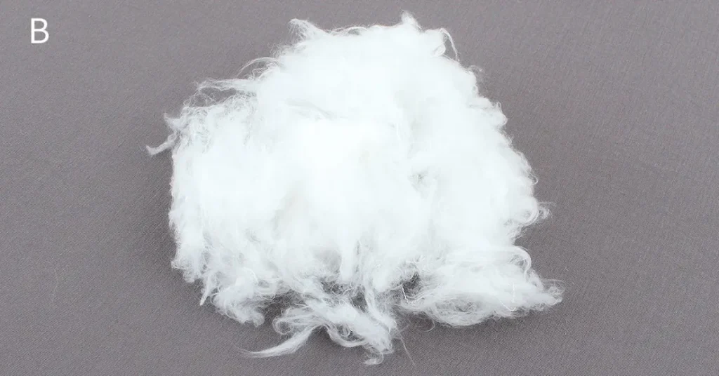上層部の中央上部:ポリエステル100%(ブレンドわた)