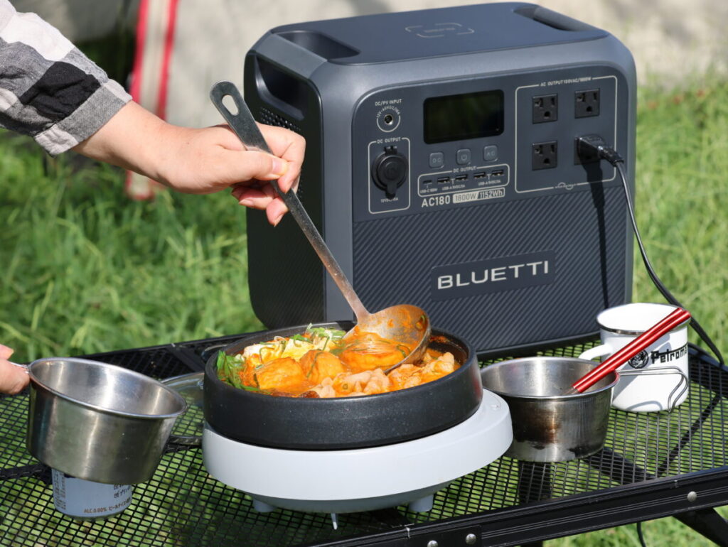 これからの季節、キャンプサイトで暖かい飲み物と鍋ができて、しかも電気毛布まで使えるとなれば、ブルーティAC180は十分フィールドで使えるポータブル電源に仕上がっていると言えるのではないだろうか。しかも、自然災害などで停電が起きた際には、電力が復旧するまで冷蔵庫(80Wなら約10時間)や電子レンジ(1500Wなら0.7時間)といった生活に不可欠な家電も動かせるのだから、ブルーティAC180を持っていて損することはなさそうだ。