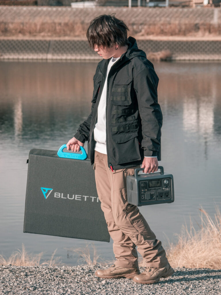 10年に1度という最強寒波が押し寄せる中、BLUETTI / EB3Aを実際に使用すべく向かった先は近所にある河原。自然が好きな私は昔からリフレッシュしたい時や自宅での作業が煮詰まった時によく訪れていた場所で、風でキラキラと輝く水面を見ながら仕事をしたり、日光浴を楽しみながら頭の中のアイデアをまとめたりするのに最適なのだ。