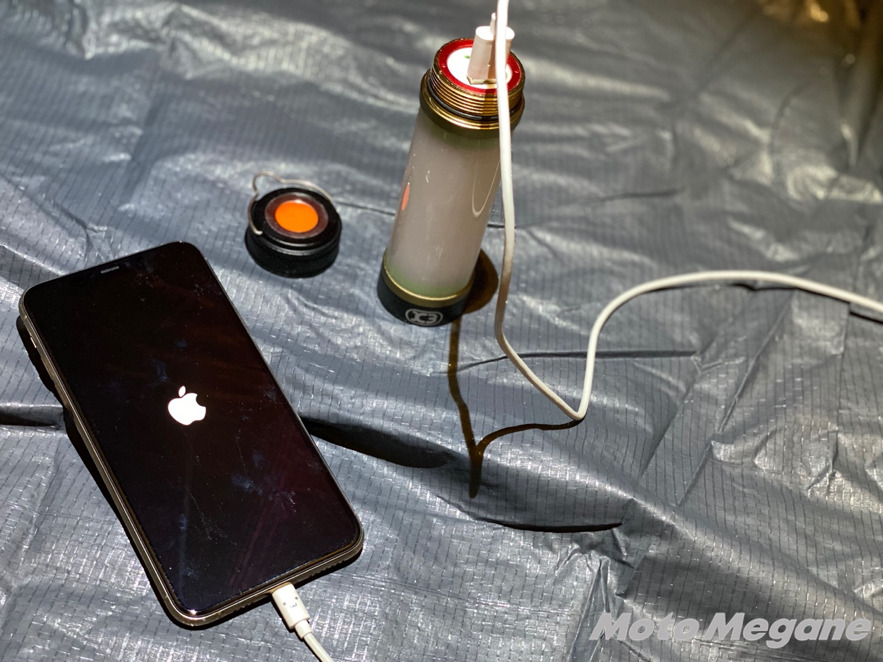 スマホの充電はバイクから取れるとはいえ、キャンプ中にスマホを使い倒して充電が無くなる…なんて事も結構あるのでこれはとっても嬉しい機能です。