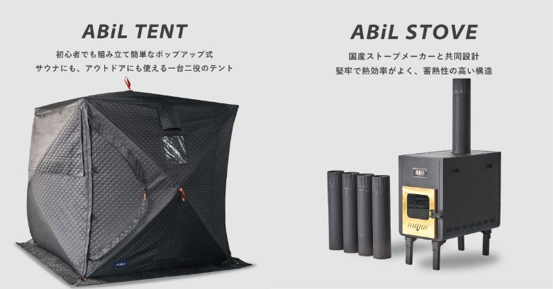 応援購入の対象商品にはABiL TENTやABiL STOVE、そしてサウナ向けアクセサリーグッズが登場予定となっており、サウナファン・ABiLファンは見逃せない内容となっている。