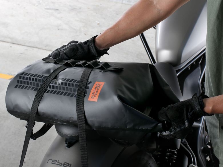 ツーリング時のバッグとしてはもちろん、他にもアウトドアでの食料入れに、そして水くみバケツ代わりにも早変わりし、一つは持っておきたい十徳バックパックと言える完成度を誇る。