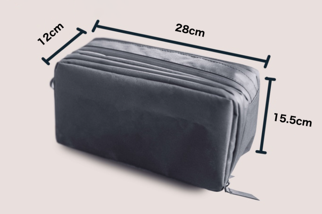 現在市販されているトラベルポーチの多くは、ポケットが細かく分かれてなかったり、外の生地が固すぎてカバンの中で大きすぎたり。