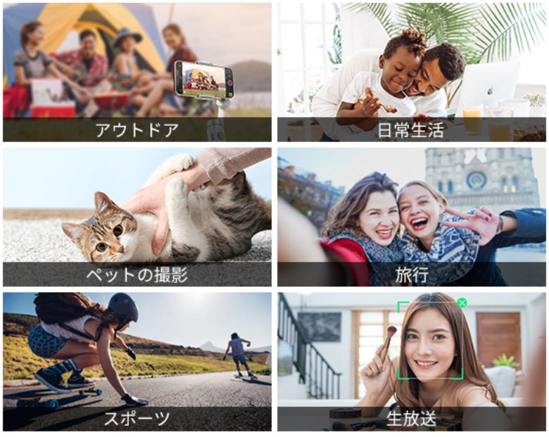 折り畳み式で収納も持ち運びもしやすい3軸ジンバルとなっており、動画撮影時の手ブレや揺れをしっかりと抑え、誰でも簡単に本格的な動画を撮影できる。