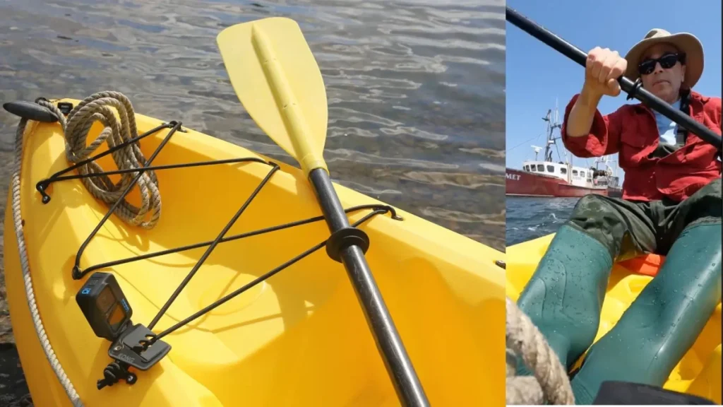 アクションカメラGoProに取り付けると、カヤックを漕ぎながら自撮り動画も撮影できます。