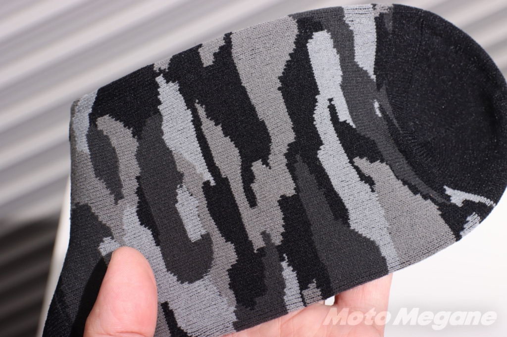 素材はものすごく厚ぼったい感じは無いので、いつも履いているシューズをそのまま履くことができるだろう。ただ、綿一層のソックスよりかは明らかに厚い感じはある。