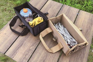 商品名の通り、パカッと開いて出し入れしやすい収納バックで、工具やアウトドア用品の収納に最適。折りたたみタイプで保管時はコンパクトになるのもうれしい。