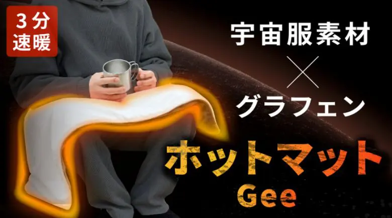 株式会社Wesmaが取り扱うホットマット「Gee」は、宇宙服の素材にも使用される断熱素材の「ポラポリス」と発熱素材の「グラフェン」が織り込まれており、圧倒的な暖かさを実現している。