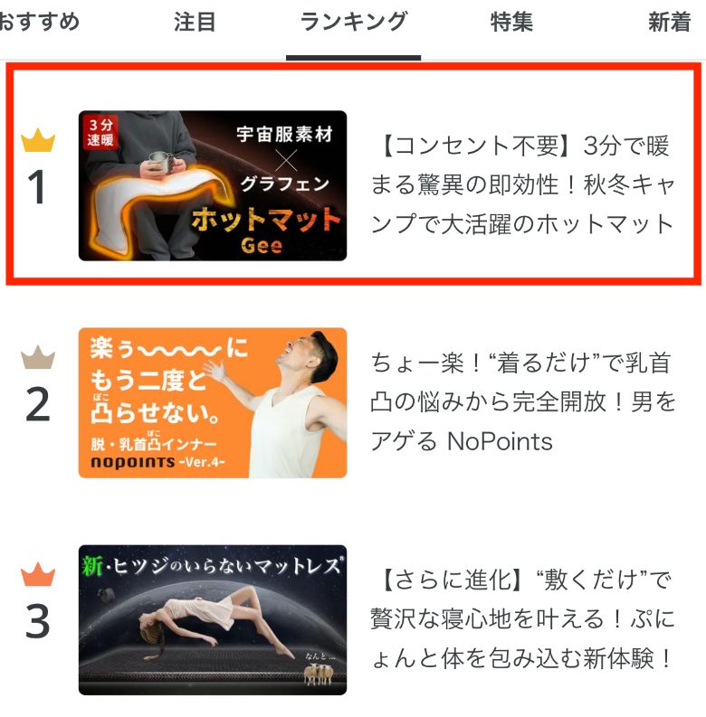 コンセントを必要とせず、モバイルバッテリーの電圧で長時間温まることができるホットマットがMakuakeに登場し、デイリーランキング1位を獲得するなど注目を集めている。