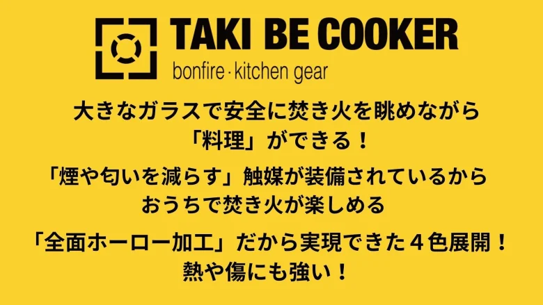 その兄貴分となる〝おうちで料理を楽しむ焚き火ギア〟『TAKI BE COOKER(タキビクッカー)』が登場した。