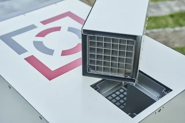 煙突の最下部には車の排気管にも使われる”触媒”を装備。白金触媒による化学反応で煙や匂い、CO(一酸化炭素)や有害物質を軽減させる。また、煙突の内部は2重構造になっていることで、上昇気流(煙突効果)が起こりやすくなり燃焼効率を上げている。