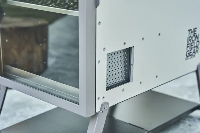 本体側面には火力調整窓があり、開閉することで炎の勢いを調整できる。