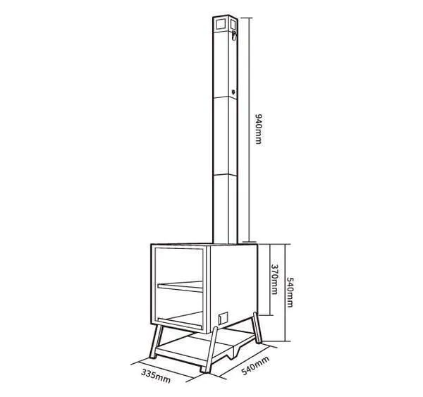 脚を折り畳み、煙突は全て庫内に収納可能。