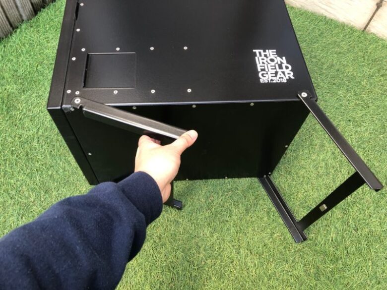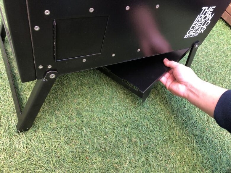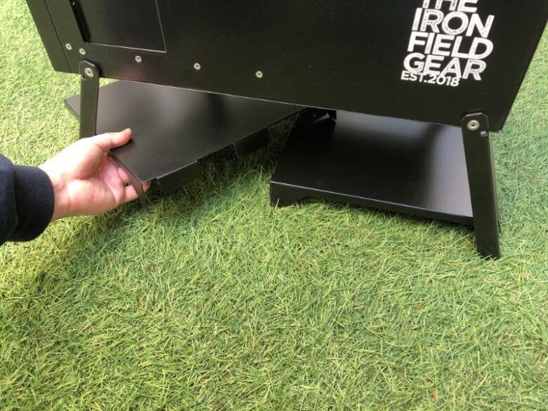 ストーブ本体の下部にはこのような脚が付いているので、まずは足を出してやる。
