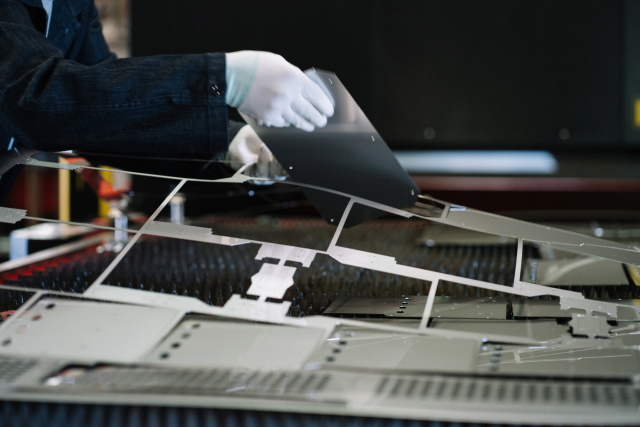 精巧な鉄板用レーザー加工機を備え、企画設計から切断、曲げ、リベット打ち、溶接、組み立て、塗装、梱包まで、TIFGの製品を作る工程のほとんどを自社工場で行い高い製品クオリティを実現している。