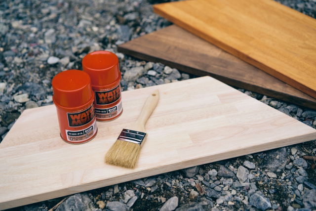 ※色を塗る場合は、ウレタン系の塗料は熱に弱く、熱いものを置くと溶けてしまう。そこで木に浸透する油性塗料がオススメ。