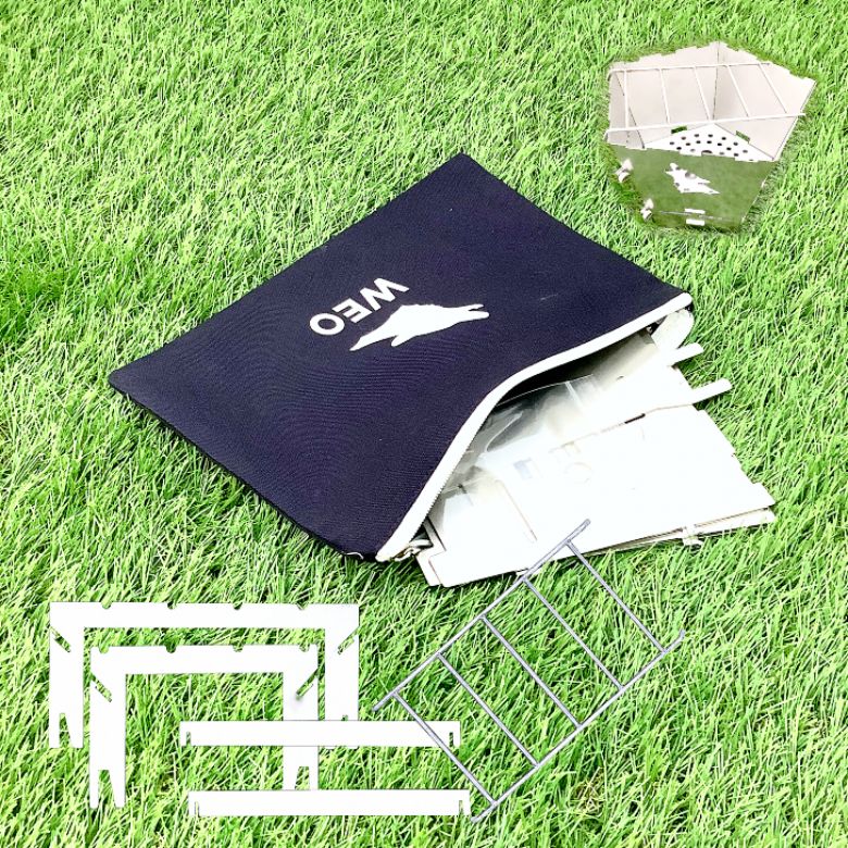 「WEO やきにく用焚火台」付属ポーチに本体と一緒に収納し持ち運びが出来るため、荷物の邪魔にならない。