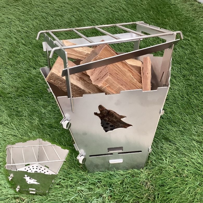 本製品は主に木炭や薪(小枝など)を使用した「WEO焚き火台オプションギア」となり、大掛かりな薪割り等のギアを準備する事なく気軽に焚き火を楽しむことが出来る。4つのパーツを組むだけなので、大体10秒で設置が可能である。(五徳部)