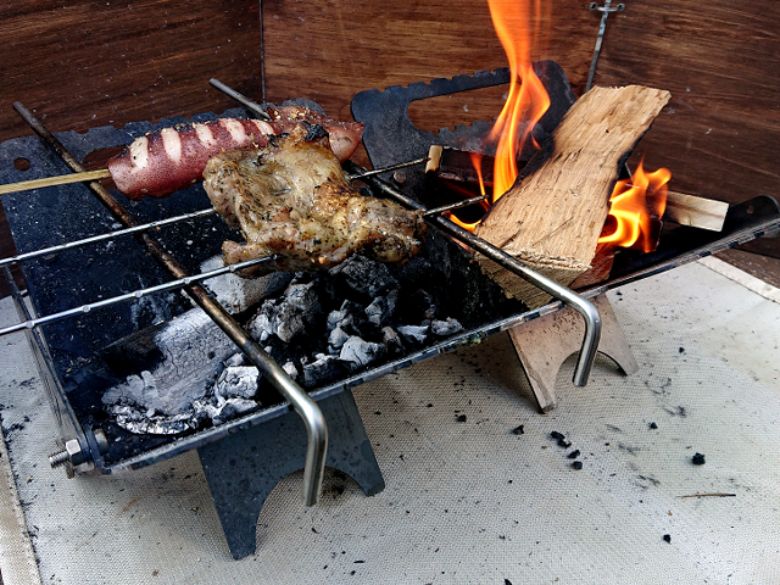 本体は両開きとなっているため取り出して開けば、すぐに焚き火が始められる。また撤収作業も開け閉めを繰り返しているだけで灰がまとまり片付けやすい。