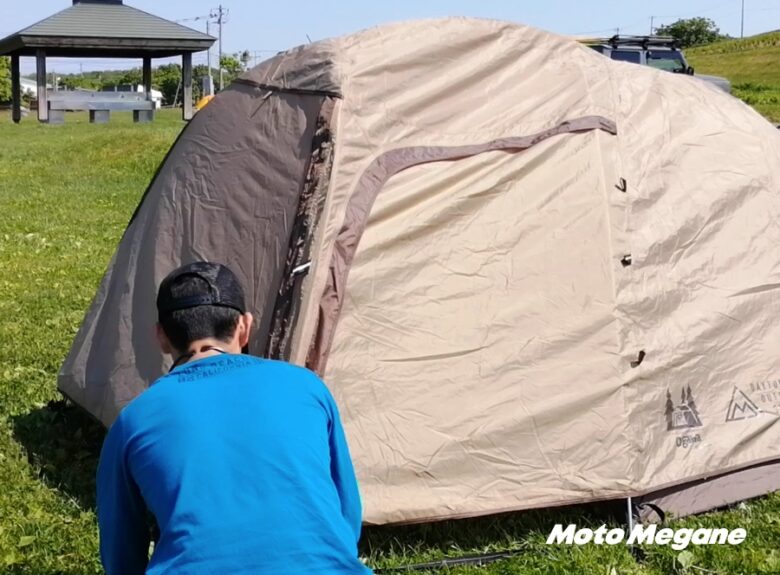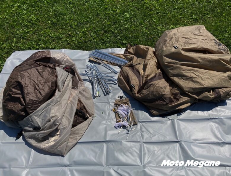 キャンプツーリングの主役といえばテント、まずはその日の家がないと始まらないですよね?