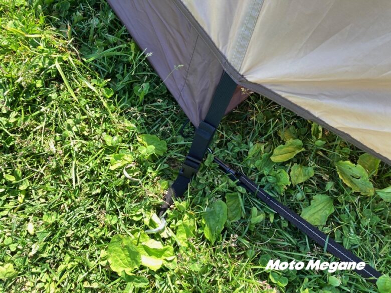 ベルクロは前室とテントの後側にもあるので、忘れずに全部巻きつけましょう!