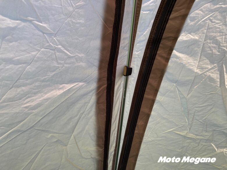 この際さっきは引っかけなかったインナーテント上部の2つのフックを、このポールに引っ掛けると綺麗な形になります。