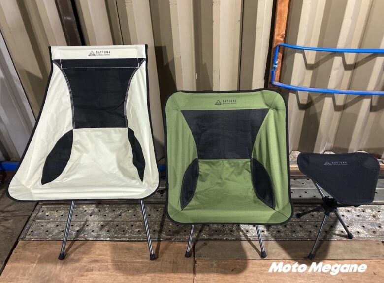他には簡易チェアの「ポータブルチェア」一般的な大きさの「コンパクトアウトドアチェア」がありますが、当然それぞれ収納サイズが異なりますので、愛車のパッキング容量と相談の上、どれにするか決めることをおすすめします。