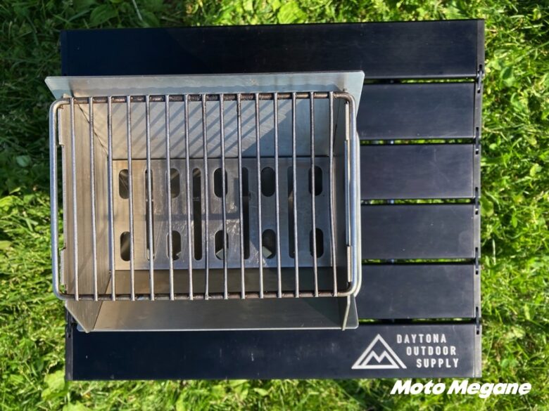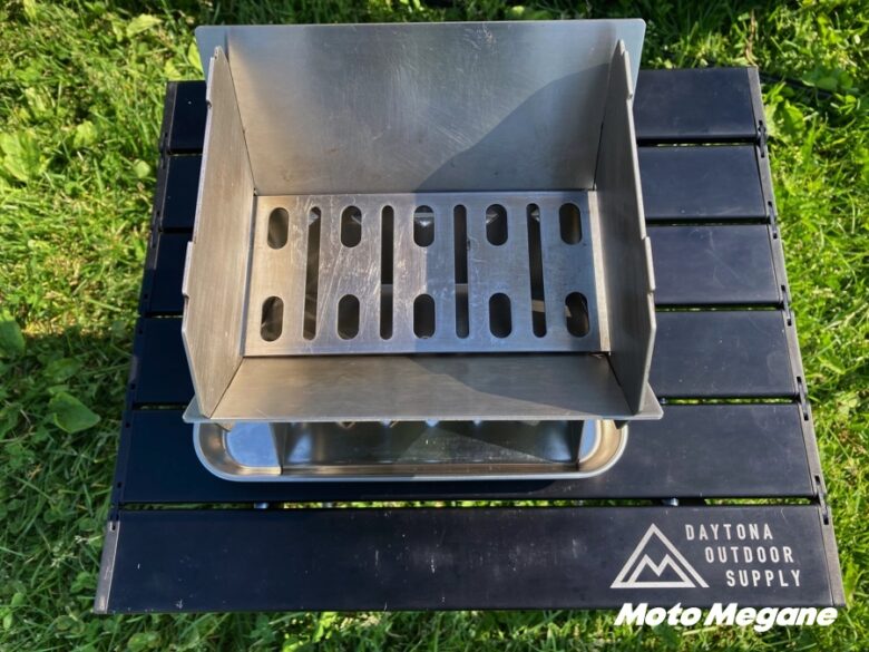 これはプレート状のパーツを差し込むだけで、簡単に組み立てられる焚き火台で、網も付いているのでBBQも可能です。