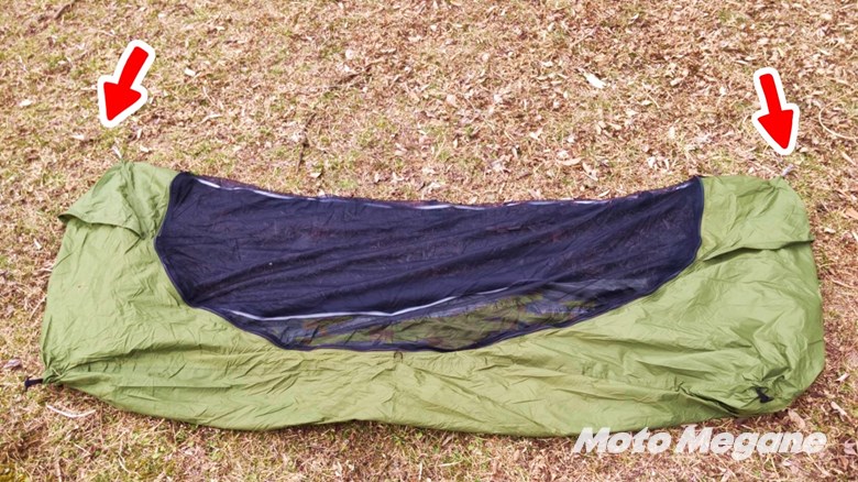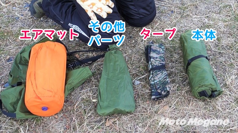 こちらも公式動画によると、収納袋に押し込むことで接地せずに撤収することができるのだそうです。