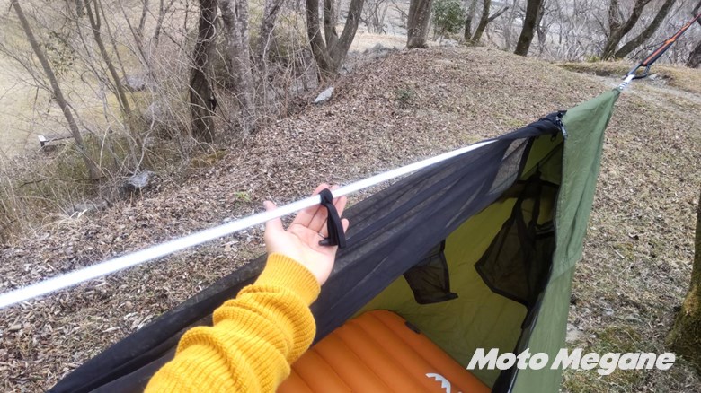 1泊してみた感想としては、まさに楽園のような寝心地。ハンモックにありがちな底冷えもなく、アンダーキルトが不要なのも嬉しいポイントでした。