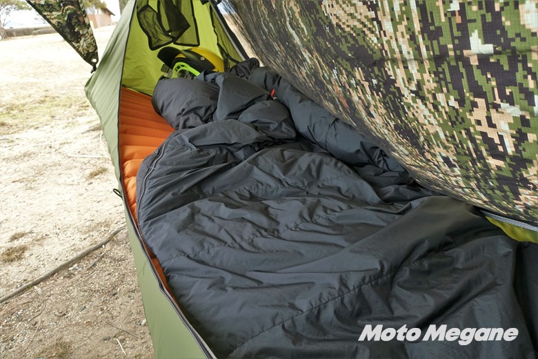 真冬に使ってみた際は、サイドからの冷たさが気になりました。当たり前のことかもしれませんが、十分なスペックの寝袋やシュラフカバーを使用する必要があります。
