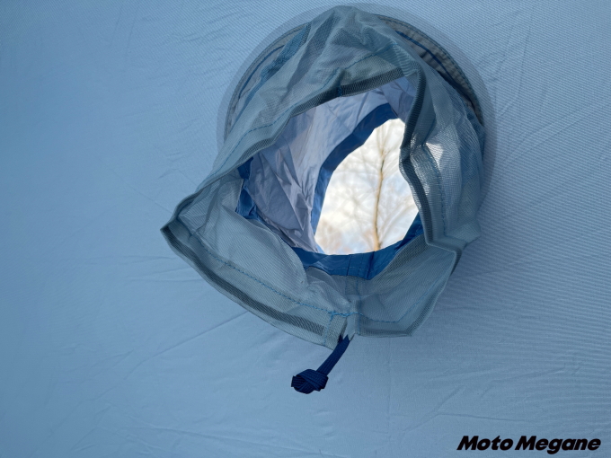 プロモンテVB-22Z:出入り口が一つのためVS-22Aほどの通気性は持ち合わせていないが、背面にある通気口かなり大きく、ここを解放すればテントの中を風が通り抜け快適に過ごせる