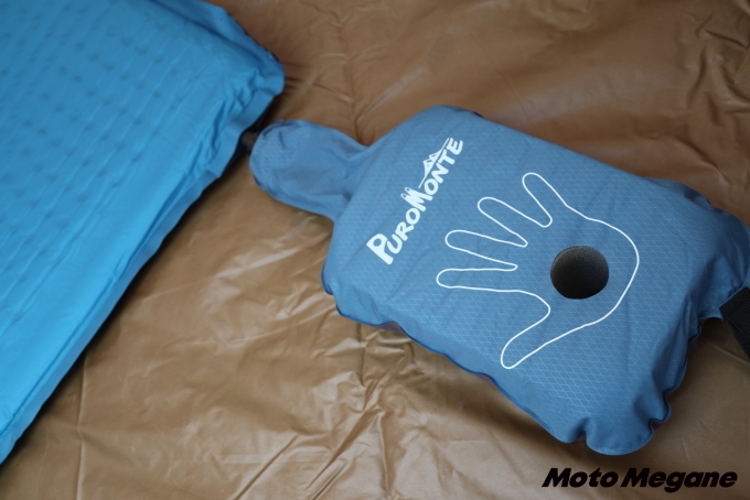 マットに連結して手動で空気を入れるポンプ。口で吹かなくていいので楽に膨らませられる。