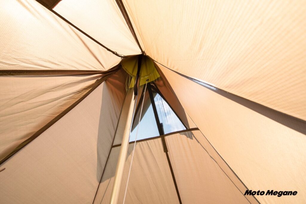 ワンポールテントというキャンプ通が好む形状ながら、キャンプビギナーにも優しいのだ。