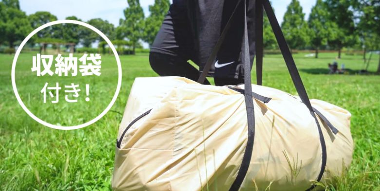 付属の収納袋にすべてのパーツを収納可能!約11.5kgの超軽量タイプで、コンパクトにまとまるから、荷物が多くなりがちなキャンプに大変おすすめだ。