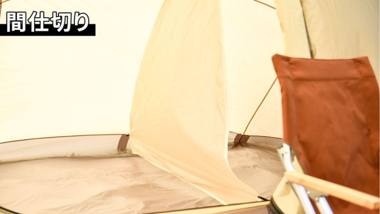 寝室となるインナーテントには間仕切りがあり、セパレート可能!